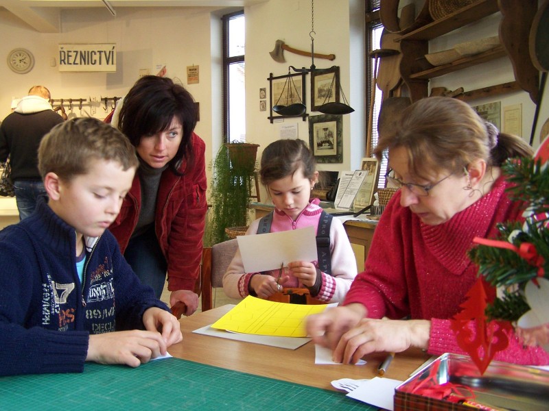 K výstvě Vánoce z papíru jsme připravili také program o adventních nedělích. Předváděla se výroba vánočních papírových ozdob podle současných i historických předloh.