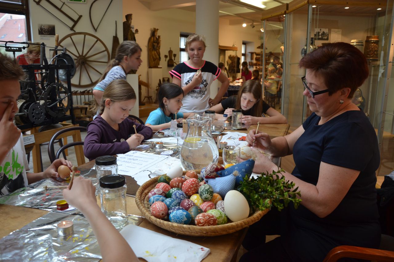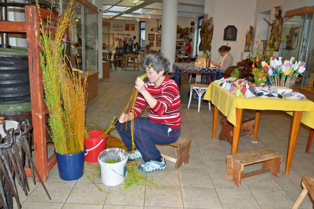 Dům historie Přešticka uspořádal pro školní mládež velikonoční předváděcí akci s pletením pomlázek, výzdobou kraslic, háčkováním zvířátek a výrobou zajíčků ze šustí.
