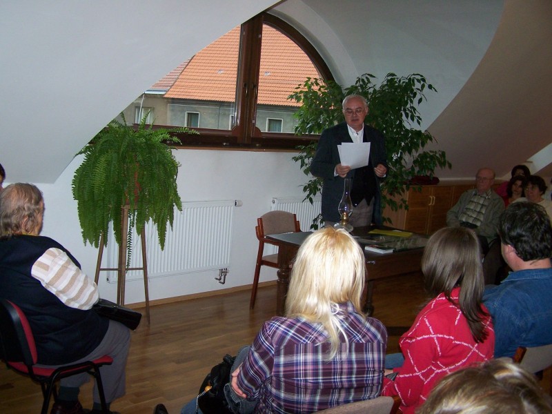 Vernisáž výstavy k 215. výročí narození vodokrtského rodáka, sedláka, rychtáře a písmáka V. J. Maška uvedl Prof. PhDr. Jiří Štaif z FF UK v Praze.