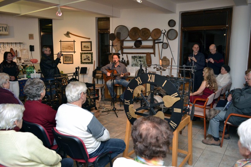 Vernisáž proběhla v sále řemesel Domu historie Přešticka. Výtvarnice Jana Holubová představila hostům nejen svoji práci, ale také svého kamaráda, kytaristu Miroslava Vítovce, který zpříjemnil vernisáž několika autorskými písněmi.