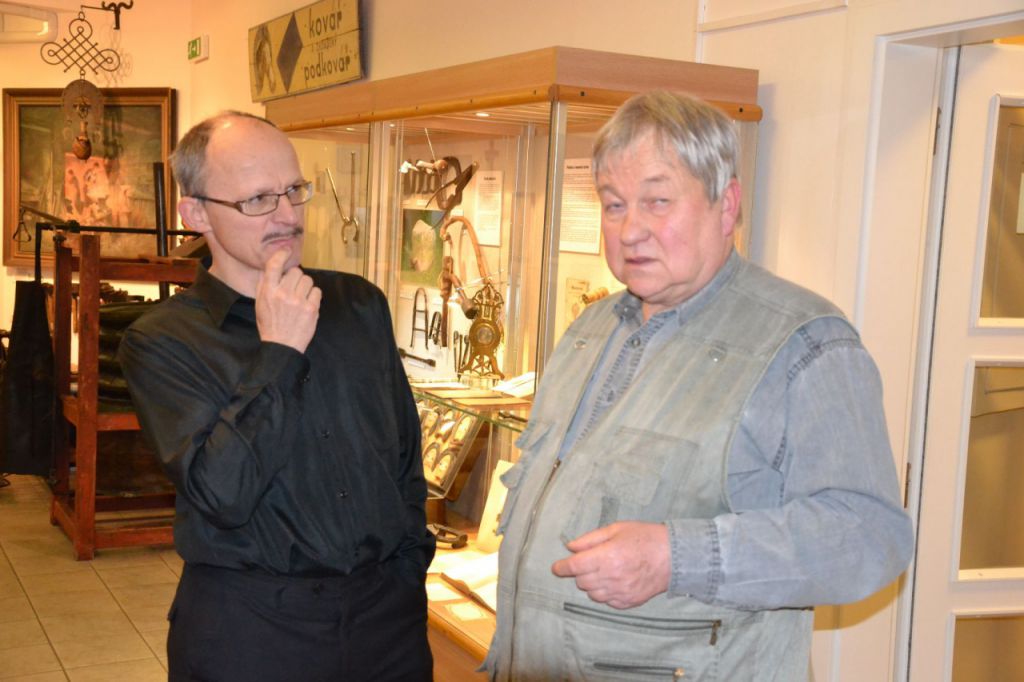 Vernisáž výstavy fenomén Merkur v Domu historie Přešticka 20. ledna 2015 za účasti sběratele Jiřího Mládka.