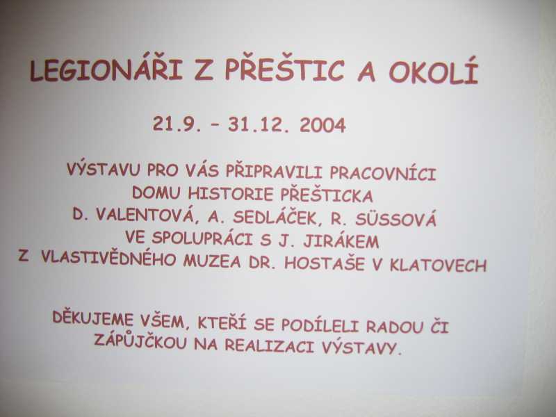 VÝSTAVA LEGIONÁŘI Z PŘEŠTICKA