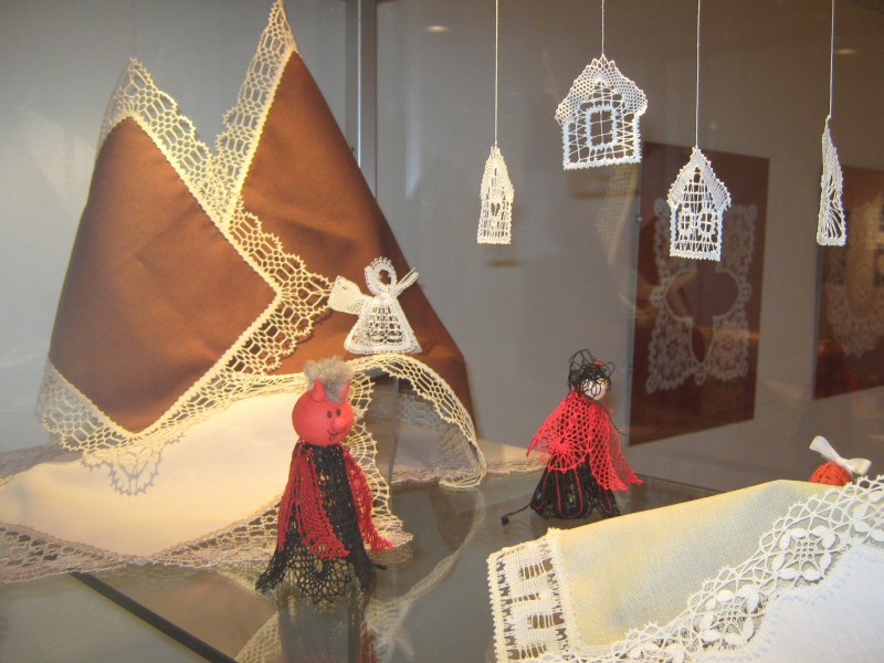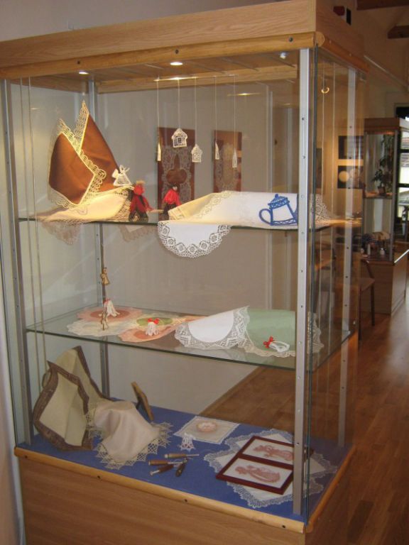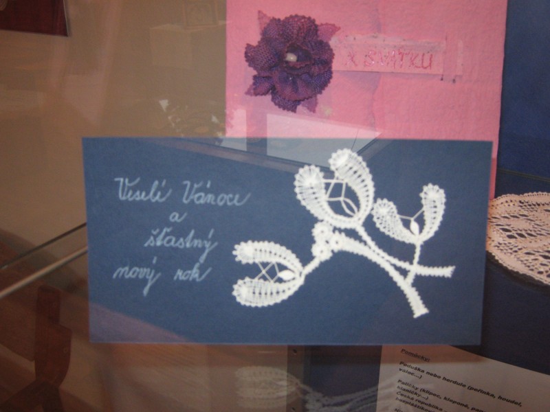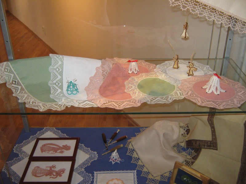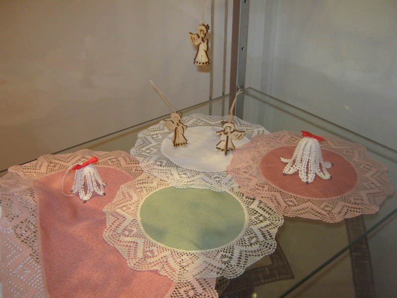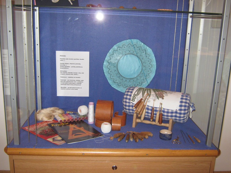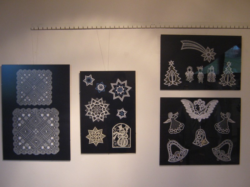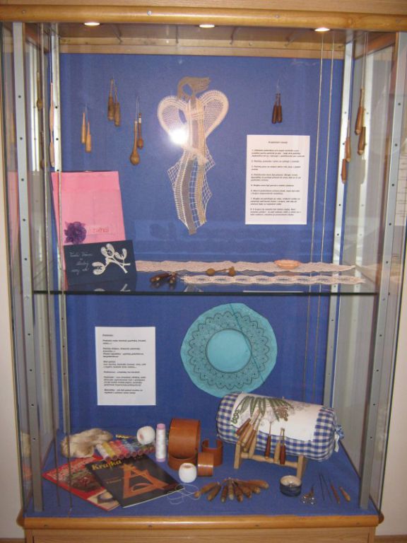 Výstava přeštického klubu paličkářek při KKC Přeštice představuje své výrobky.