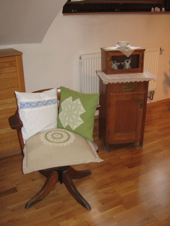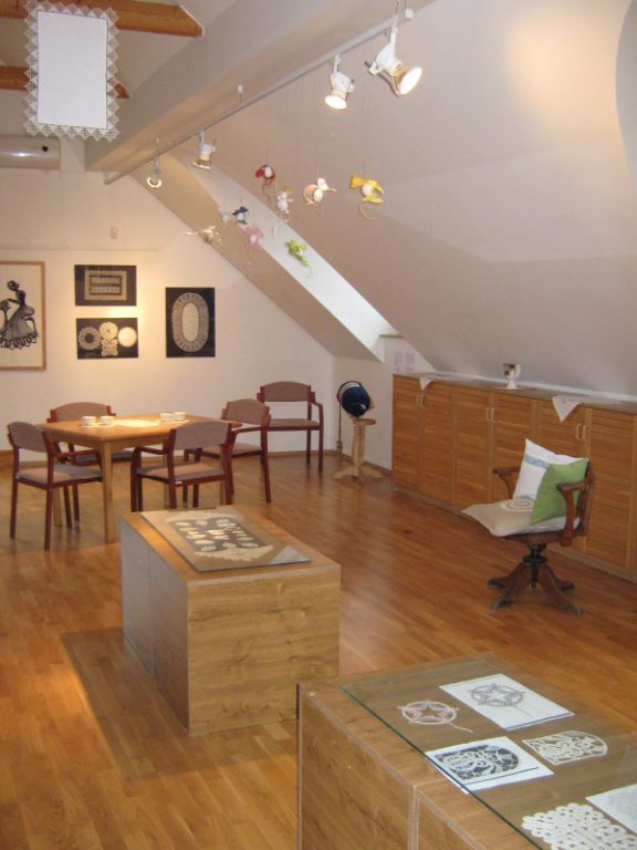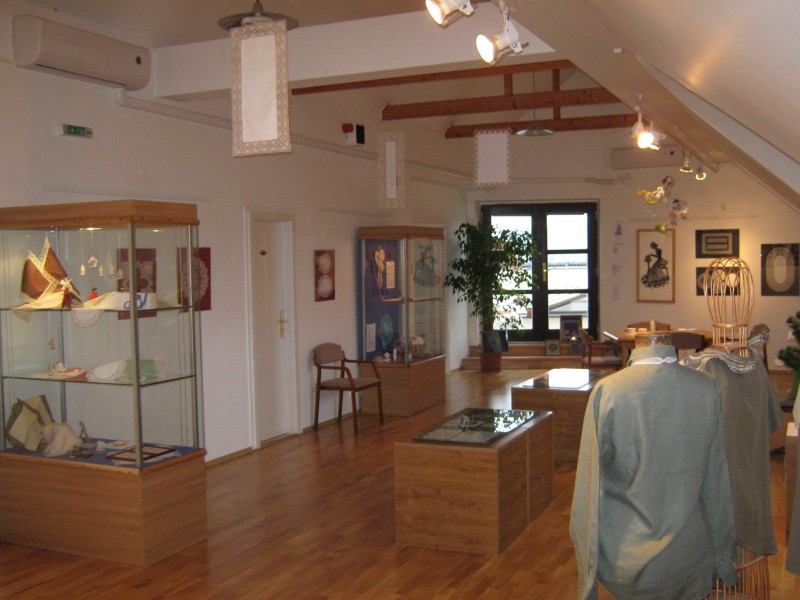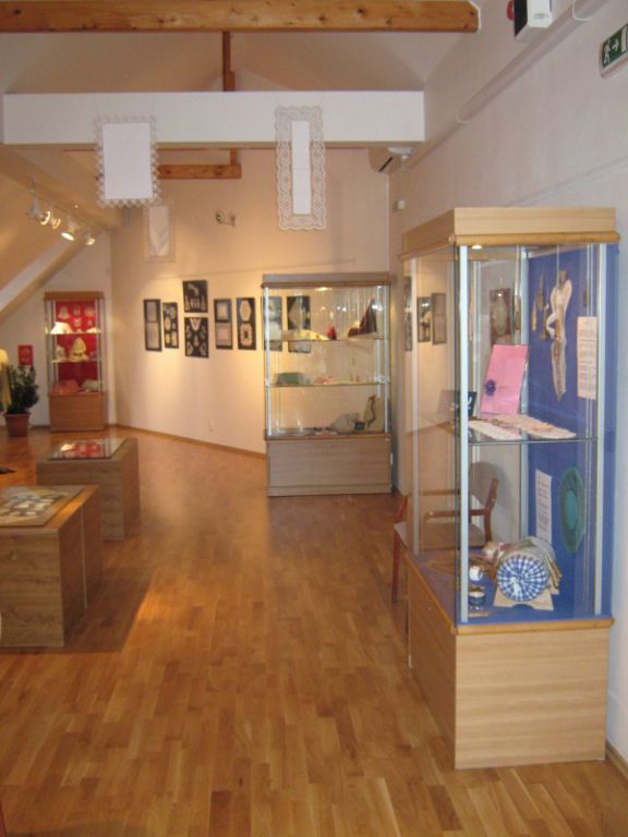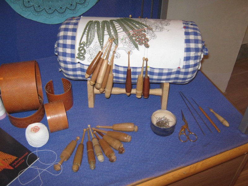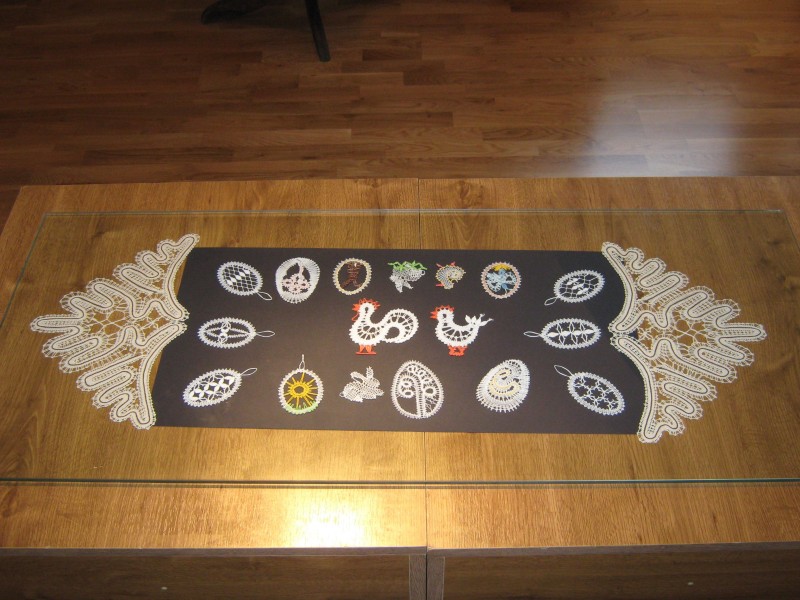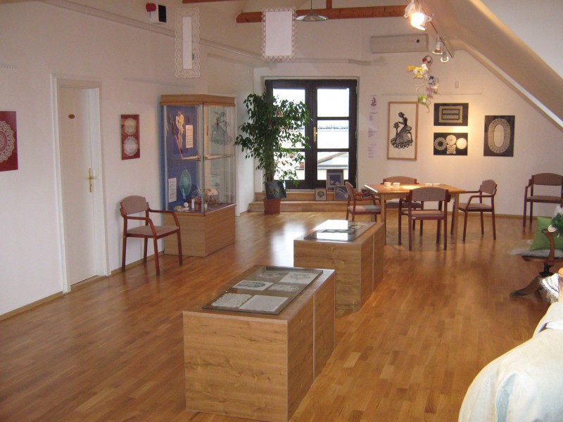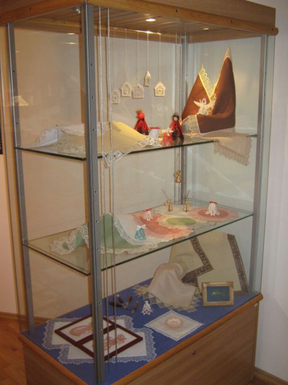 Výstava přeštického klubu paličkářek při KKC Přeštice představuje své výrobky.