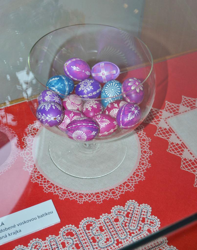 Výstava ručních prací se vztahem k paličkované krajce a velikonočnímu zdobení vajíček.