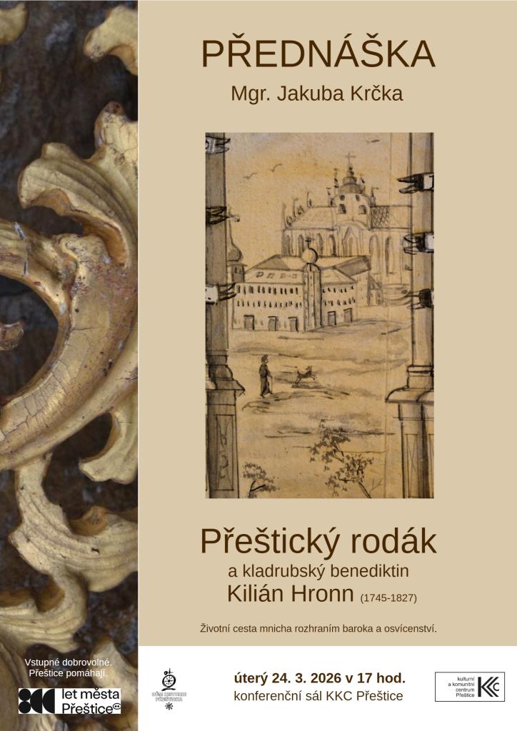 Historik Mgr. Jakub Krček v přednášce seznámí s životní cestou přeštického rodáka Kiliána Hronna v kladrubském klášteře.